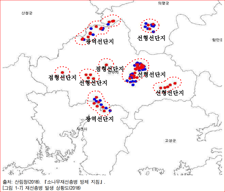 3. 피해목의 공간적 분포 해석 및 피해 진행 상황을 예측한다.