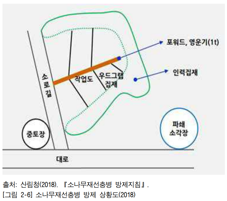 – 현장 조사 – 방제 산물 처리 방법별 작업로 배치의 순서로 진행한다.