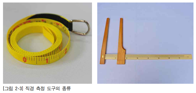 (1) 흉고 직경의 조사: 방제 대상목을 대상으로 가슴 높이 지름을 윤척하며, 직경 테이프 등을 이용하여 2cm 괄약으로 측정하고, 이를 야장에 기록한다.