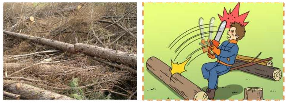- 안전한 자세로 작업을 하며, 기계톱은 자연스럽게 움직여야 하며, 벌목한 나무 가까이 서서 작업한다.