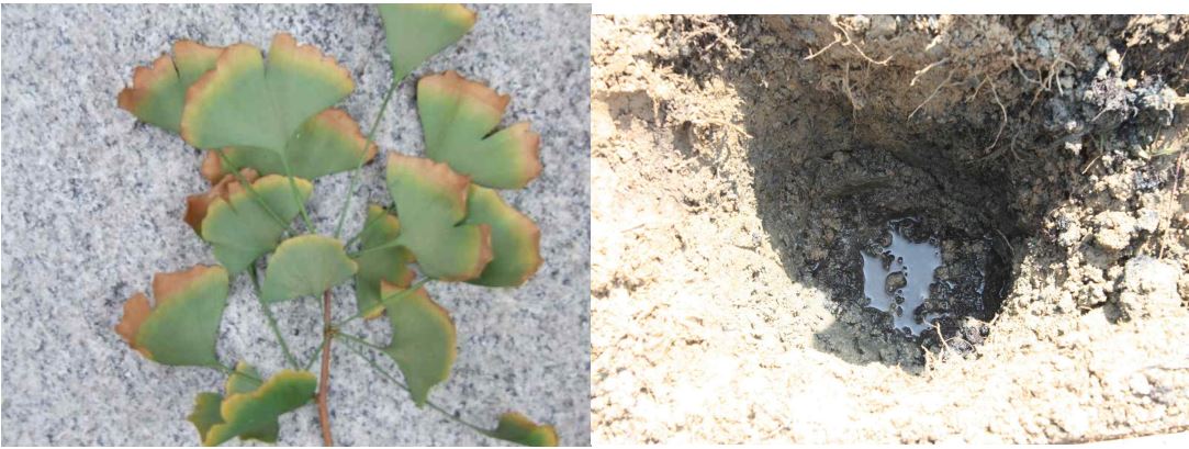 뿌리 피해부위는 직접 땅을 파보아야 확인 가능하다. 발근 불량은 세근이 보이지 않는 반면, 과습 등에 의한 피해는 고사한 뿌리가 나타난다.