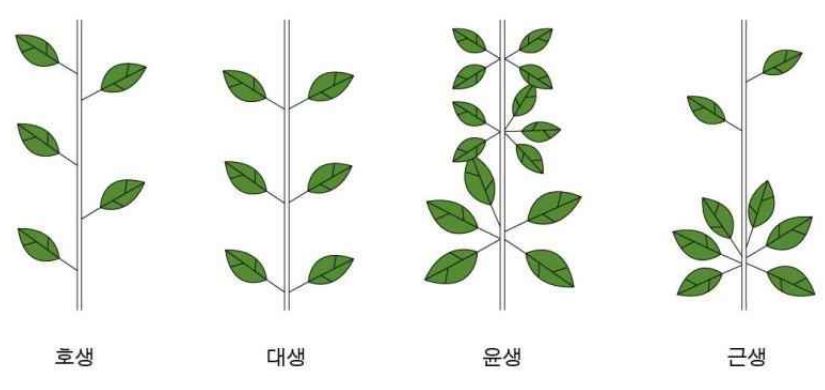 1. 잎의 차례 : 호생, 대생, 윤생, 근생을 확인한다.