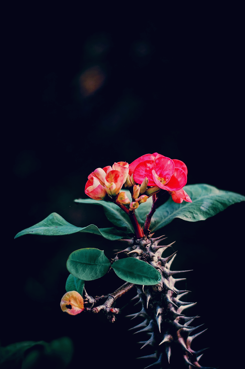 꽃기린은 쌍떡잎식물 쥐손이풀목 대극과의 목본상 다육식물로, 꽃이 솟아 오른 모양이 기린을 닮았다고 하여 꽃기린이라고 합니다. 꽃기린의 학명은 Euphorbia milii Ch. des Moulins.이며, 가시가 있어 영어 이름은 예수님의 가시면류관을 뜻하는 Crown of Thorns 입니다.