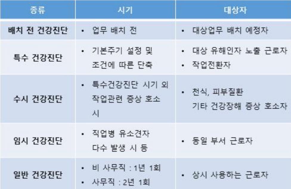 ▪ 배치 전 건강진단 또는 특수건강진단을 통해 배치 및 업무 적합성 평가