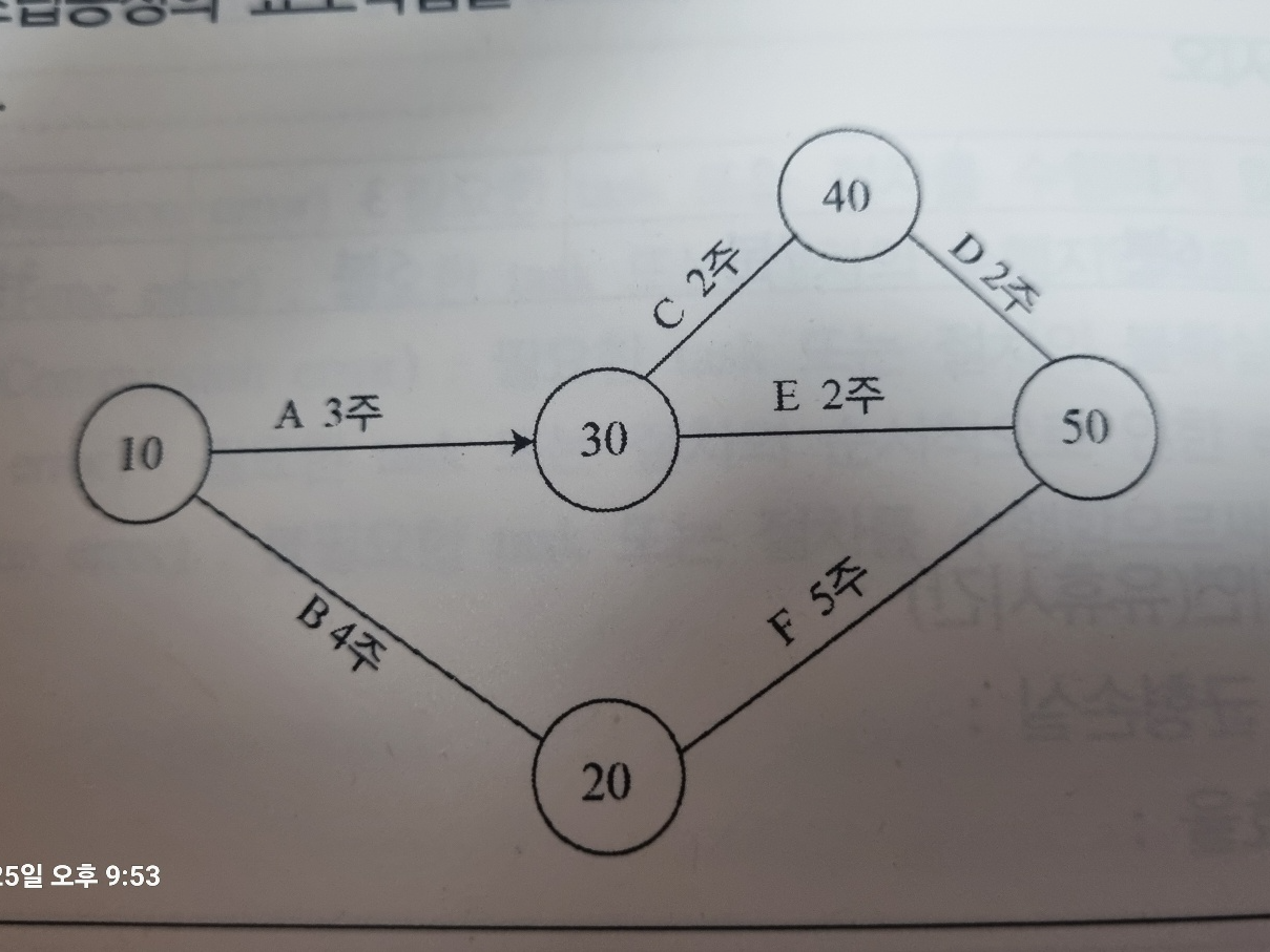 조립공정 요소 작업 PERT 차트에서 주 공정 경로와 공정시간을 구하시오