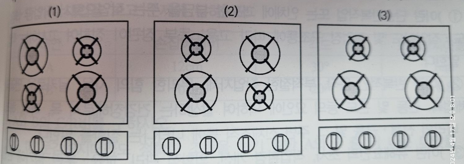4구의 가스불판과 점화(조종) 버튼의 설계에 대한 다음의 질문에 답하시오.
