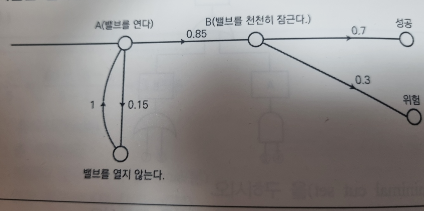 다음은 THERP에 대한 문제이다. A(밸브를 연다)와 B(밸브를 천천히 잠근다)를 실시할 때 성공할 확률은 얼마인가?