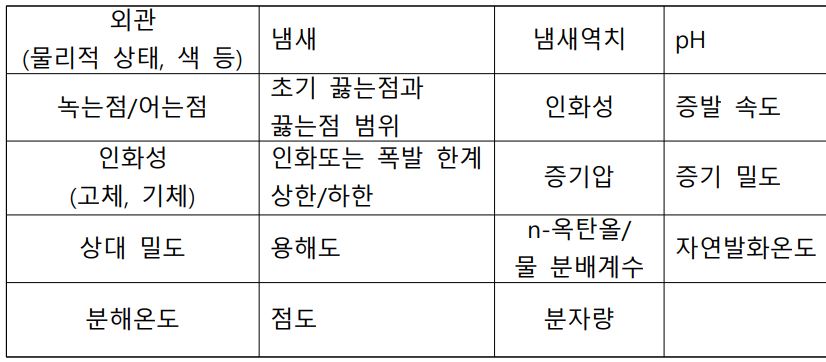▪ 폐기 방법에 대한 영향은 물리 화학적 특성을 고려하여 작성