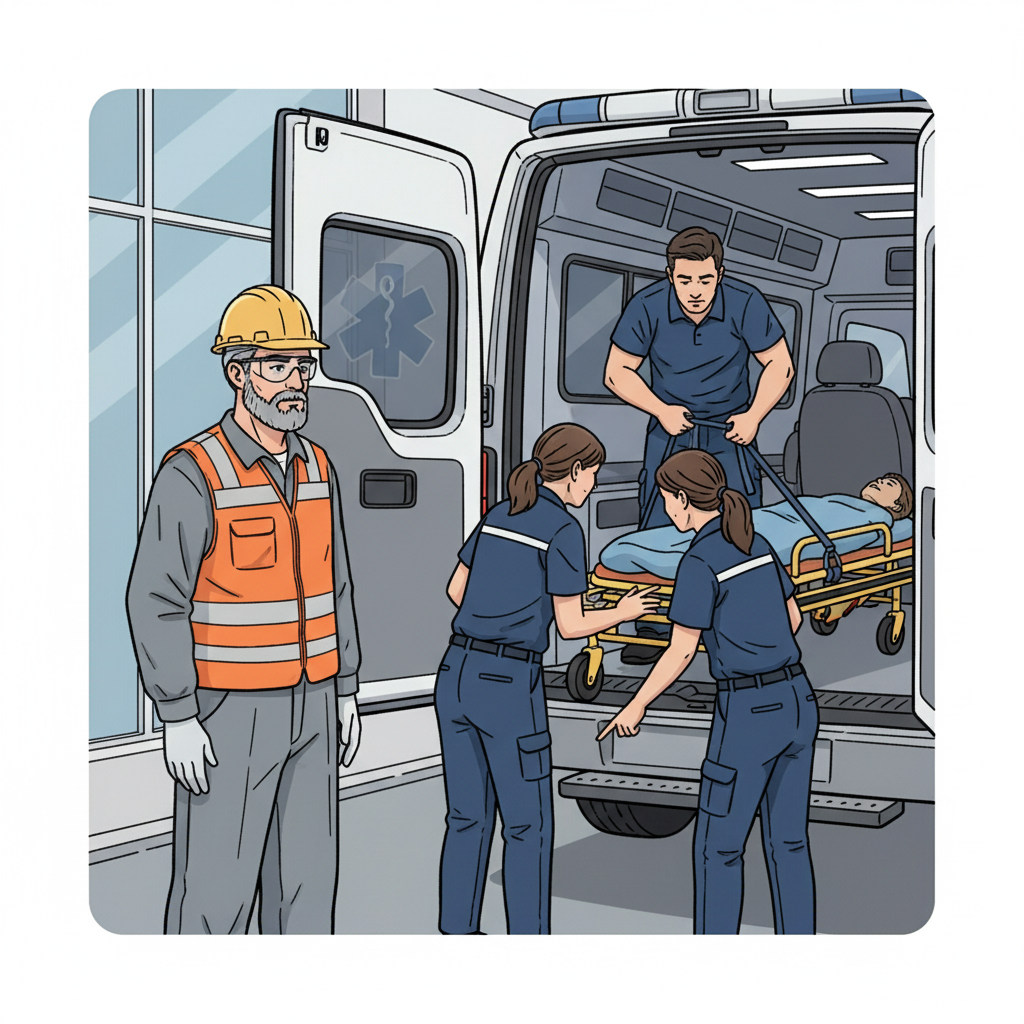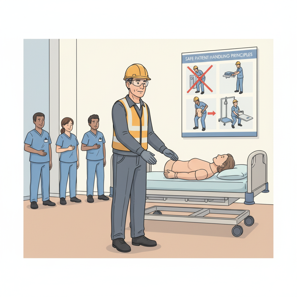 안전 및 인간공학: 수하물 작업, 환자 이송 시 낙상 및 미끄러짐, 주사기 바늘 찔림 등. (예방: 2인 1조 작업, 미끄럼 방지, 날카로운 도구 안전 처리)