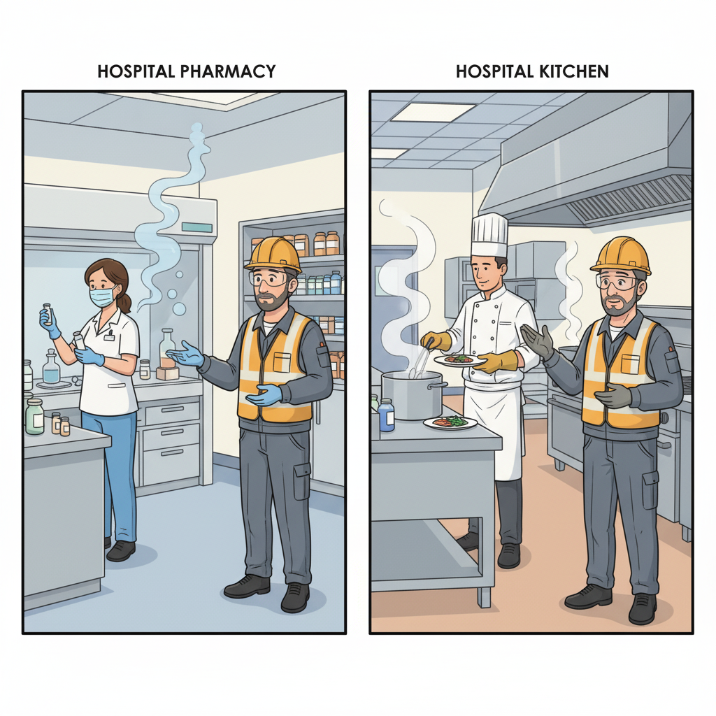 병원은 의사와 간호사분들만의 공간이 아닙니다. 환자 치료에 필수적인 약을 조제하고, 식사를 준비하며, 청결을 유지하는 숨은 일꾼들이 계시죠. 이분들의 역할은 병원 운영에 있어 매우 중요하며, 그만큼 각자의 작업 환경에서 고유한 유해위험요소에 노출되어 있습니다.