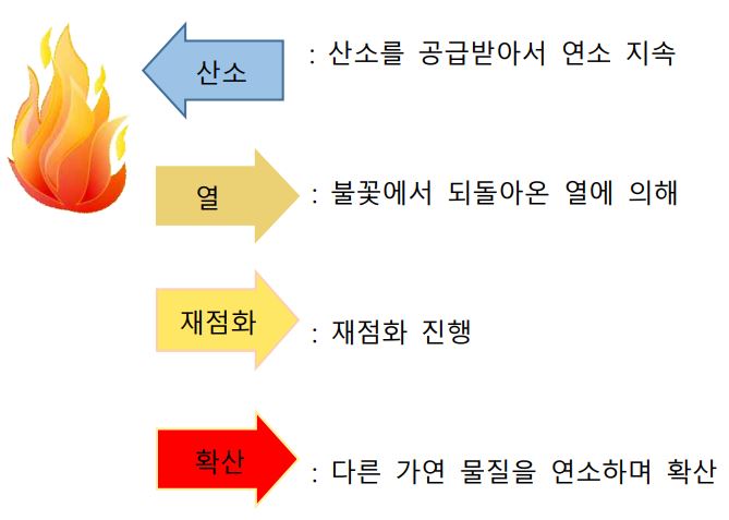 ▪ 가연성 증기와 가스 생성 및 발화로 연소 반응을 지속하도록 함