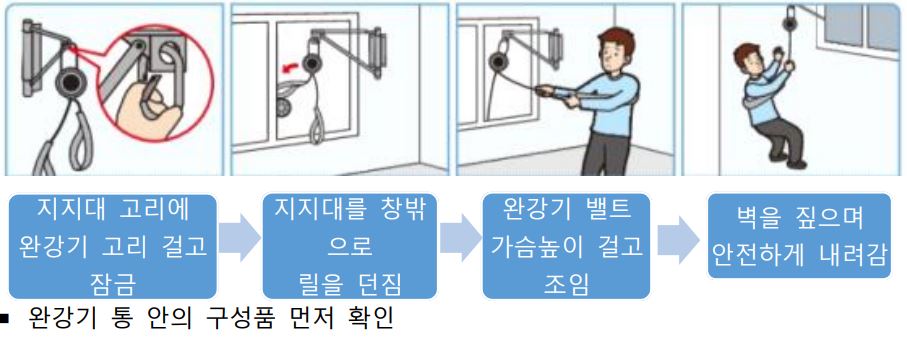 - 창밖으로 뛰어내리거나 함부로 문 열지 않기