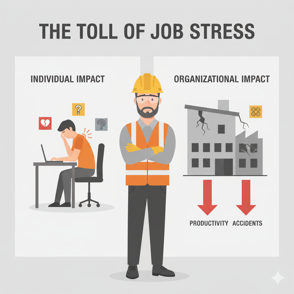 산업재해 발생 증가: 판단력 저하 및 부주의로 인한 안전사고 발생 위험 상승. 제가 현장에서 작업하는 것을 보면, 스트레스가 많은 날에는 작은 실수도 잦아지는 것을 직접 느낄 수 있습니다.