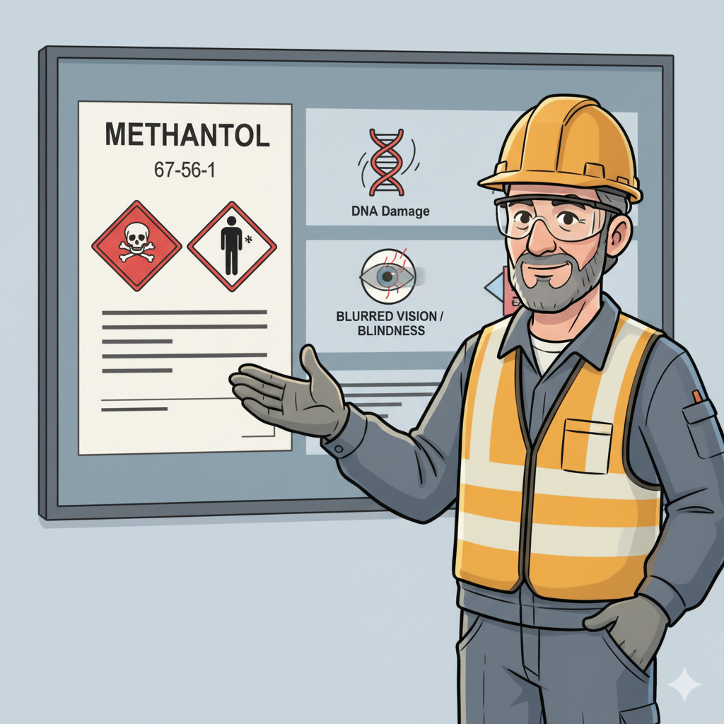 과거에 일부 사업장에서 저독성 용매라고 오인하여 환기가 안 되는 밀폐된 공간에서 메틸알코올을 사용했다가 집단 실명 사고가 발생했던 끔찍한 사례도 있습니다. 사용 전에는 반드시 **물질안전보건자료(MSDS)**를 확인하는 습관을 들여야 합니다.