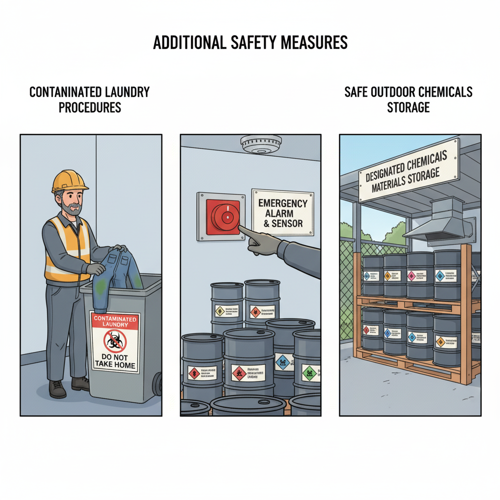 📉 저장 및 취급량 최소화: 설비의 연결 부분은 틈새 없이 완벽하게 유지하고, 유해물질의 작업장 내 저장 및 취급량을 최소화하여 만일의 사고 발생 시 피해를 줄여야 합니다. 불필요하게 많은 양을 보관하는 것은 잠재적인 위험을 키우는 것과 같습니다.