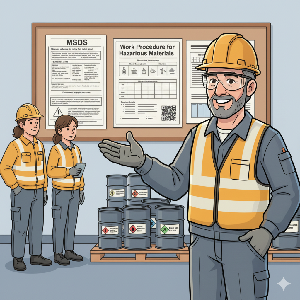 MSDS(물질안전보건자료) 비치 및 게시: "취급하는 모든 관리대상 유해물질에 대한 MSDS는 근로자가 언제든 쉽게 접근할 수 있는 장소에 비치하고 게시해야 합니다. 이 자료는 해당 물질의 이름, 유해성/위험성, 안전한 취급 방법, 비상조치 요령 등 '물질의 모든 정보'가 담긴 아주 중요한 문서입니다. 단순히 게시만 할 게 아니라, 근로자들이 이를 읽고 이해할 수 있도록 교육하는 것도 중요하죠."