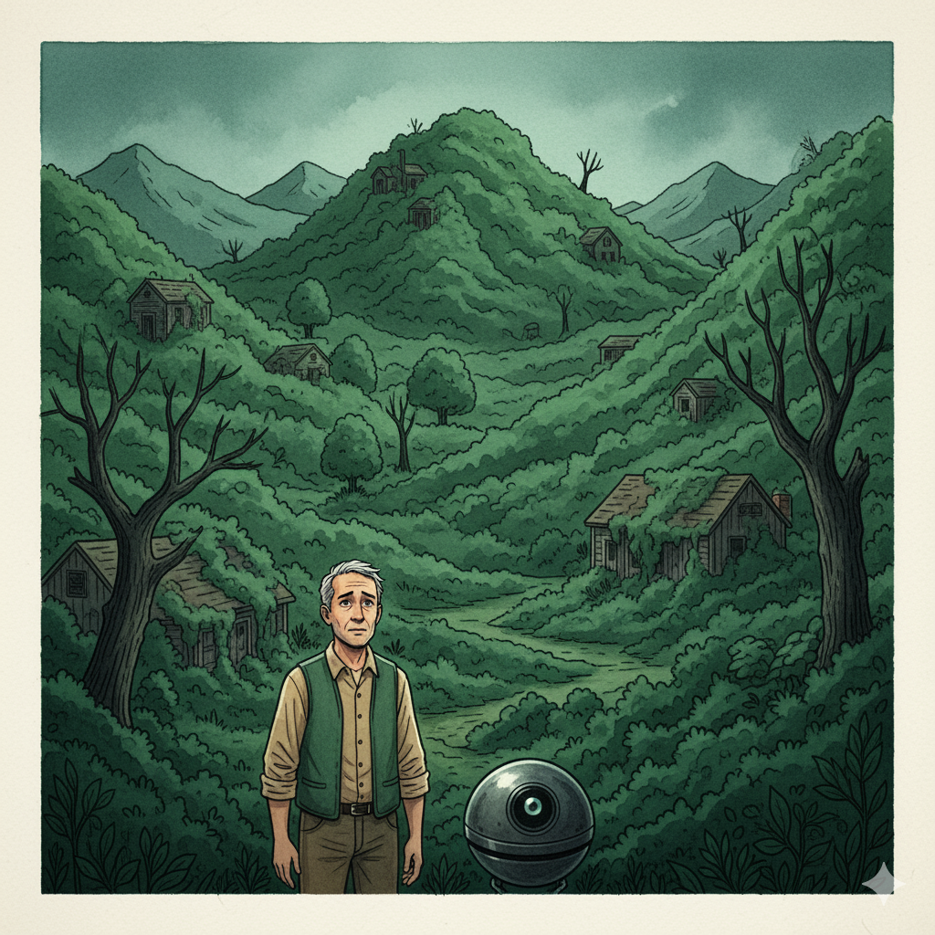Daniel cast his gaze outside the window. He saw kudzu vines beginning to climb the wall and envelop the surrounding trees. What had started as a few delicate leaves now spread aggressively like a colossal green curtain, threatening to swallow everything.