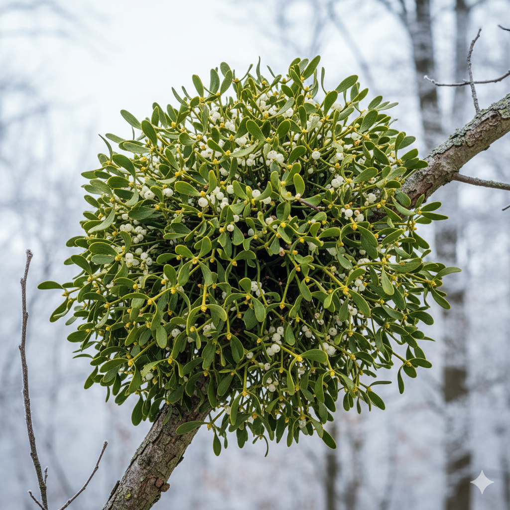 이름의 유래 (Origin of the Name): '겨우살이'는 '겨우 살다' 또는 '겨울에 살다'라는 뜻에서 유래한 것으로 추정됩니다. 서양에서는 'Mistletoe'로 불리며, 게르만 신화와 관련하여 성스러운 식물로 여겨지기도 했습니다.