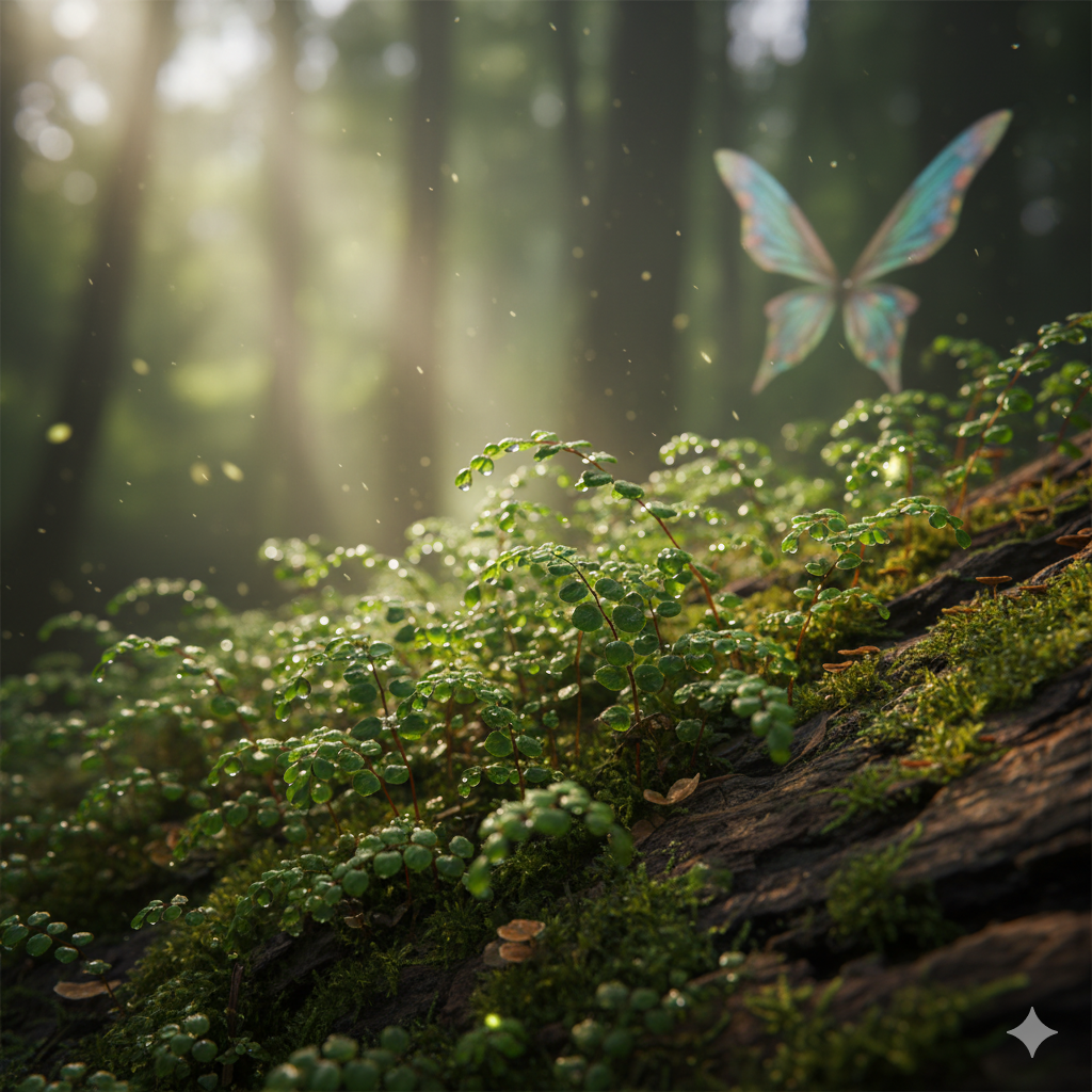 더피고사리는 수억 년 전부터 지구에 존재해 온 고사리류의 후손입니다. 뉴질랜드의 습윤한 환경에서 생존하며 겪어온 오랜 역사는 이 작은 식물에게 강한 생명력과 적응력을 선물해 주었죠. 헬렌은 더피고사리의 섬세한 잎들이 마치 바람에 흔들리는 작은 녹색 파도처럼 느껴질 때마다, 자연의 끈질긴 생명력과 평온함을 동시에 느낀답니다.