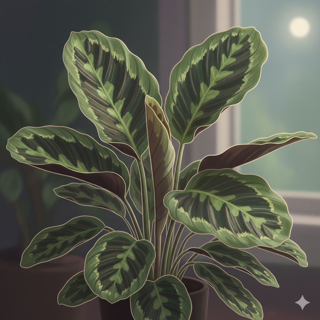 칼라데아 아마그리스는 비교적 건강한 편이지만, 건조하거나 통풍이 부족하면 응애나 깍지벌레 같은 해충으로 힘들어할 수 있어요. 잎 뒷면이나 줄기 사이를 정기적으로 살펴보며 작은 벌레 흔적이 없는지 확인하는 것이 중요합니다. 잎 끝이 바싹 마르거나 갈색으로 변한다면, "주인님, 환경이 너무 건조해요!" 하고 말하는 중일 거예요.