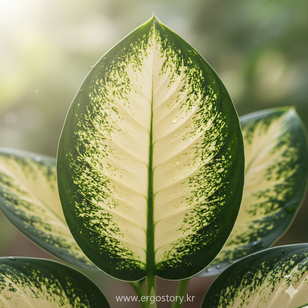 디펜바키아는 **영어 이름이 'Dumb Cane(말문이 막히는 줄기)'**인 이유가 있습니다.