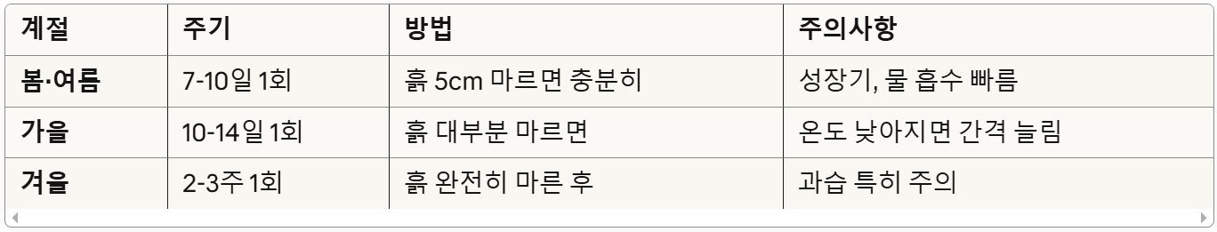 * 물: 흙이 충분히 마른 후 주기 (과습 금물!)