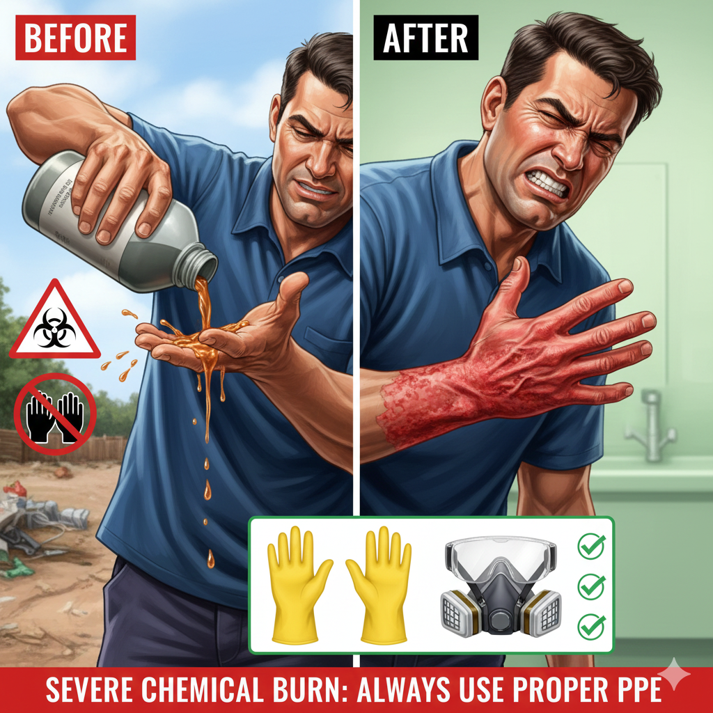 빨갛게 부어오르고, 물집이 생기고, 피부가 갈라졌습니다. 병원에 가니 **"화학 화상"**이라고 했습니다.
