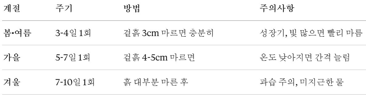 * 봄·여름: 밝은 간접광, 한낮 직사광선은 차광