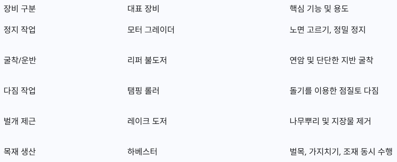 장비의 효율적인 선정은 공기 단축과 직결된다. 정지 작업, 굴착 작업, 다짐 작업에 따라 최적의 장비가 존재한다.