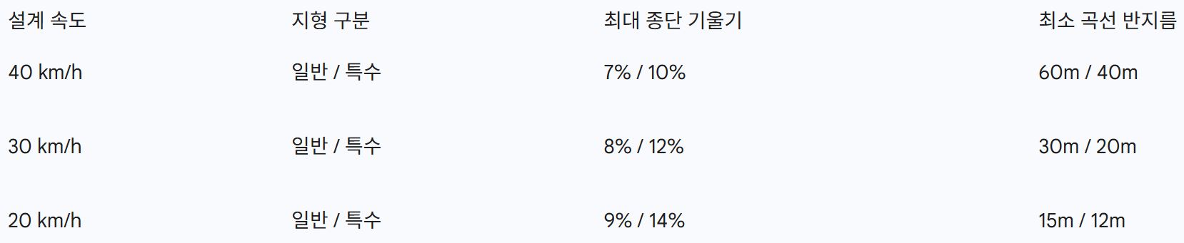 4-1. 설계 속도와 종단 기울기의 기준