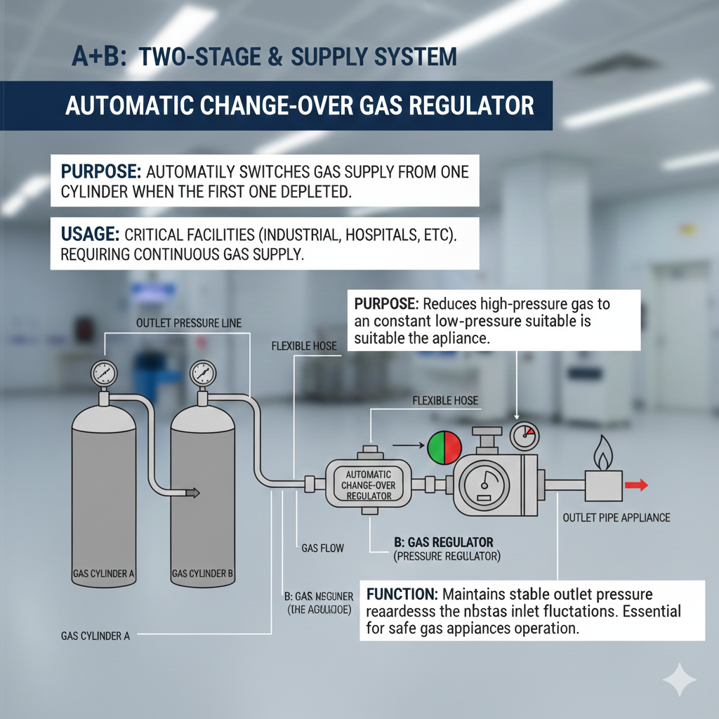 - 용도: 한쪽 용기의 가스가 떨어지면, 자동으로 다른 쪽 용기에서 공급되도록 교체