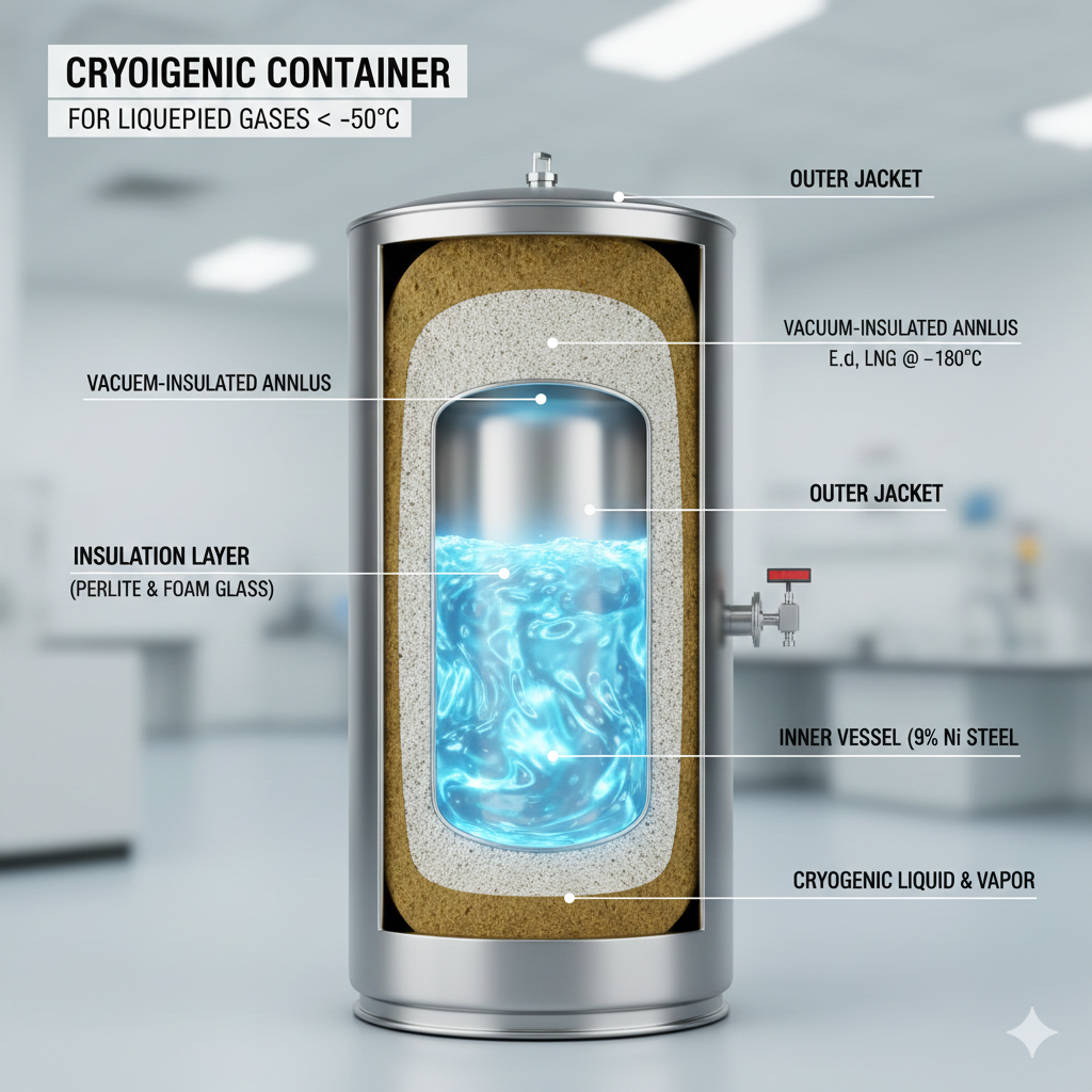 - 초저온 용기 (-50℃ 이하): 액화산소, 액화질소 등