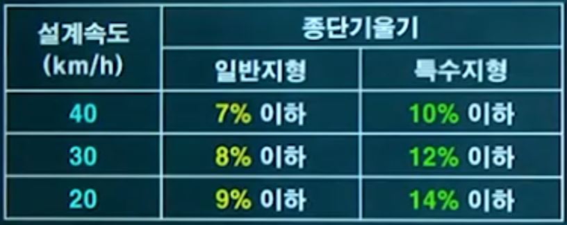 • 해설: 물매곡률비 K = (R ÷ I)  여기서, R:곡선반지름(m), I:종단물매(%)