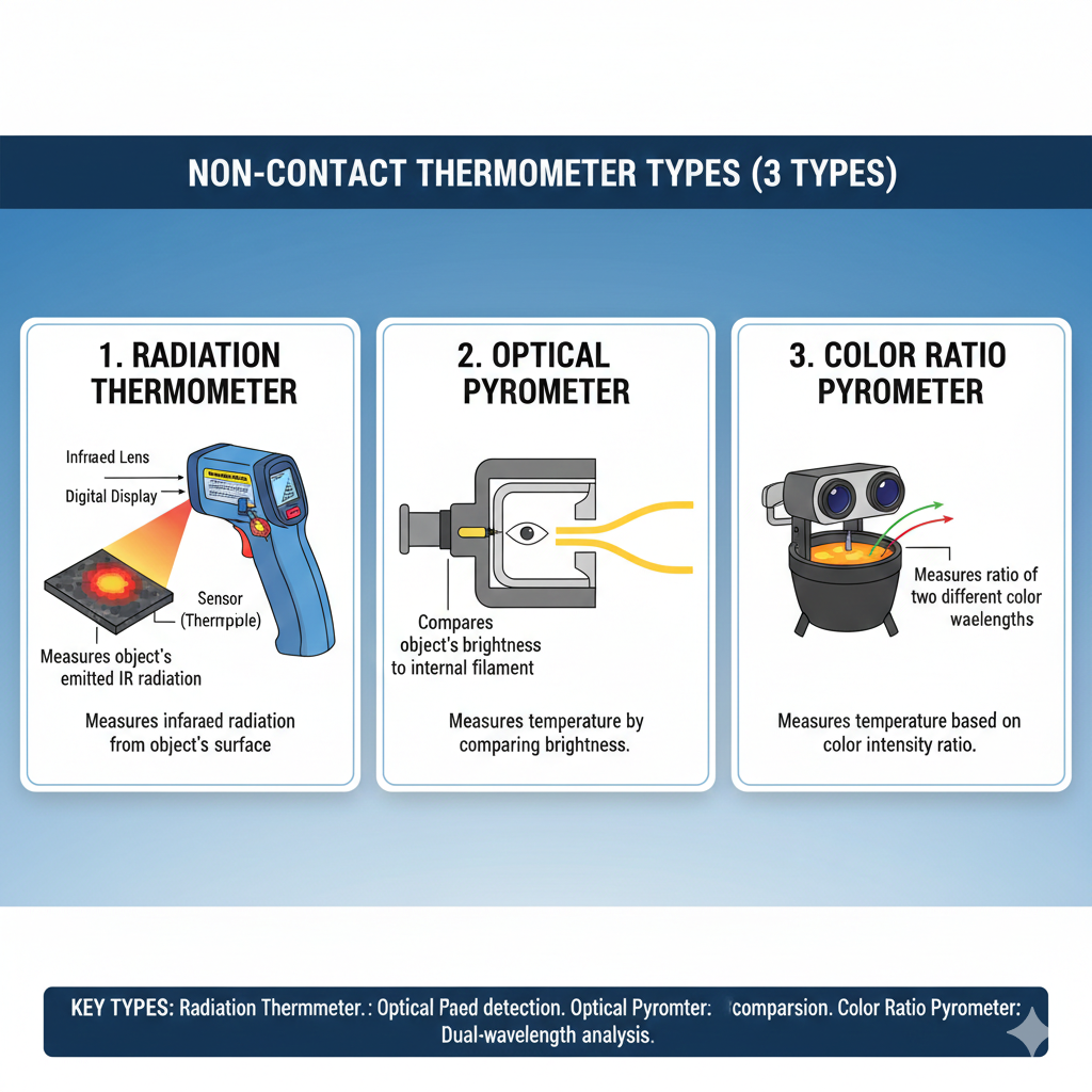 - 문제: 비접촉식 온도계의 종류 2가지를 쓰시오.